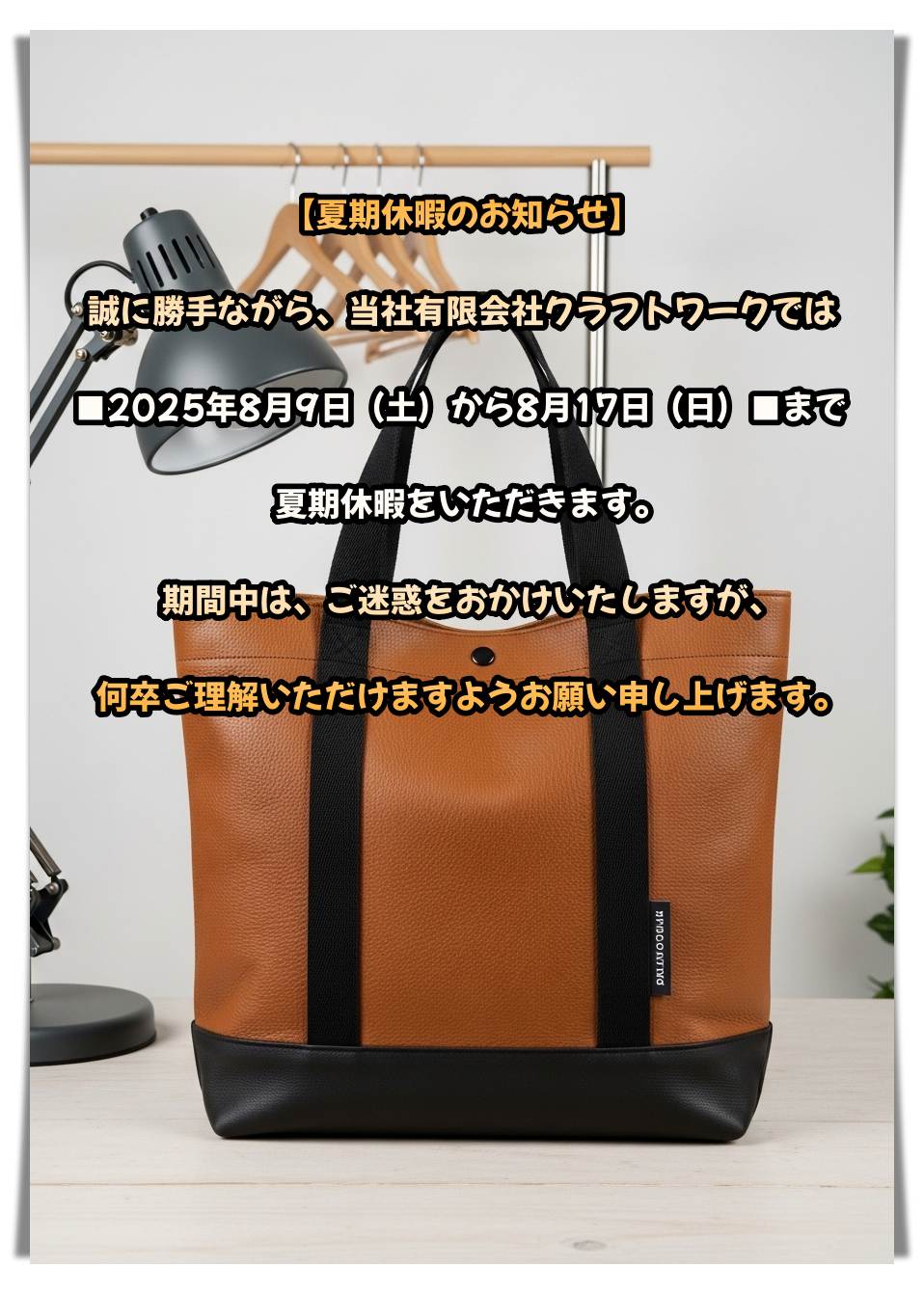バッグ工場の有限会社クラフトワーク【夏季休暇】お知らせ
